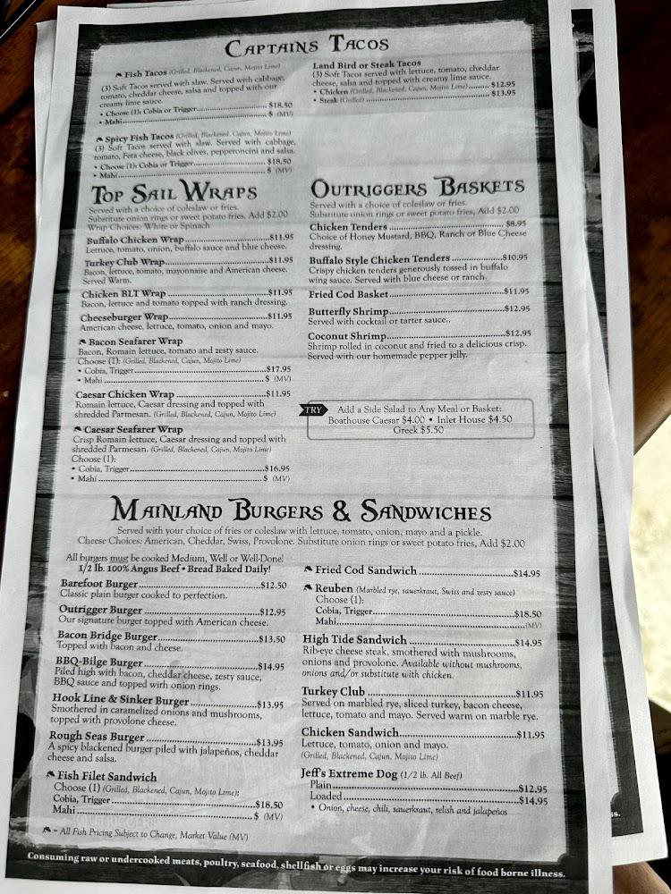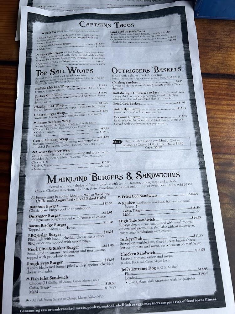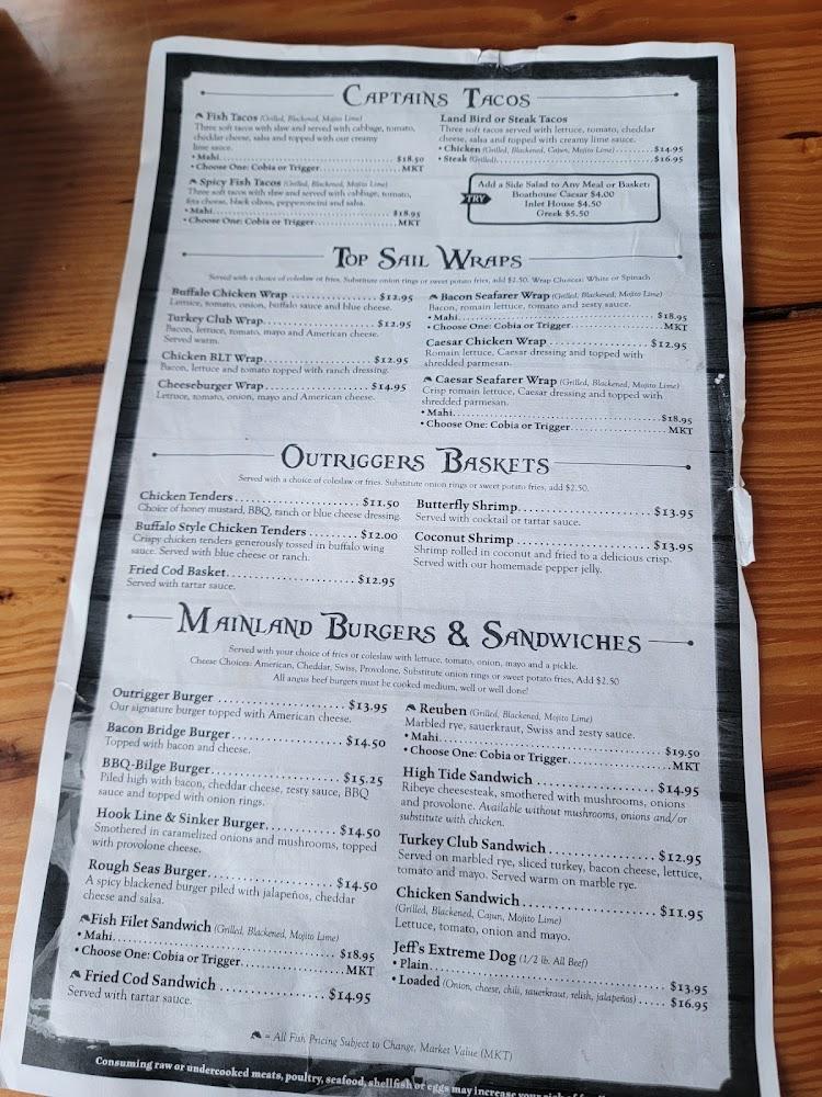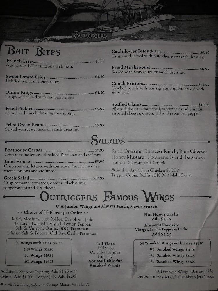 Outriggers Bar & Grill features a diverse menu focusing on casual American cuisine with a seafood twist. Diners can choose from a range of plates like fresh fish, burgers, and wraps. Signature items include the Outrigger Burger and delicious buffalo chicken wraps. Don't miss the coconut shrimp and fried cod for a taste of the ocean. For lighter fare, numerous salads cater to health-conscious guests. Daily specials frequently highlight local ingredients, and there's always something new to try. Overall, the menu promises comfort food with a coastal flair that suits everyone's taste.